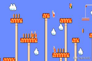 这里有巨型红蘑菇,你可别嘴馋。你在救出公主之前不能吃它们,只能踩着它们过山谷,用力跳吧!最后还是要谨慎操作平衡升降电梯。