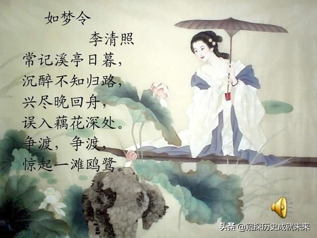 年轻时的李清照,可是说是鲜活的,快乐的,纯真的,我曾经很羡慕李清照的“兴尽晚回舟,误入藕花深处。争渡,争渡,惊起一滩鸥鹭。”能想象的出,这时候的李清照是多么的快乐。