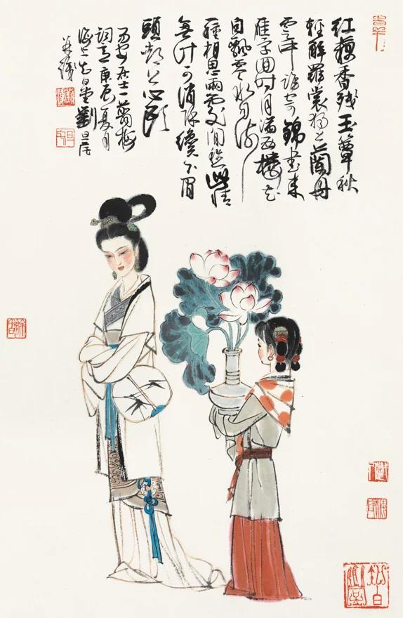 年轻时的李清照应该是较为清瘦体型的,我的根据是她的词句。《点绛唇》“蹴罢秋千,起来慵整纤纤手。露浓花瘦,薄汗沾衣透”。这首词大约写于她结婚之前,也就是少女时代的李清照。少女李清照用“露浓花瘦”四个字,形容刚刚荡完秋千的自己“薄汗沾衣透”的身体。